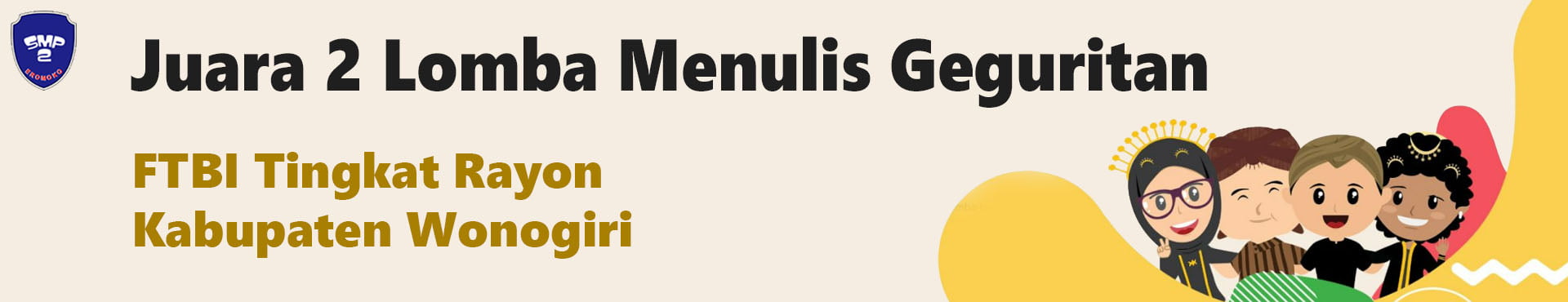 SMP Negeri 2 Eromoko – Festival Tunas Bahasa Ibu (FTBI) kembali digelar untuk Tingkat Rayon Kabupaten Wonogiri pada hari Kamis (20/10/2022) yang bertempat di SMP Negeri 6 Wonogiri. Acara yang diinisiasi oleh MGMP Bahasa Jawa ini mengadakan serangkaian lomba berbahasa Jawa yang diikuti siswa tingkat SMP.