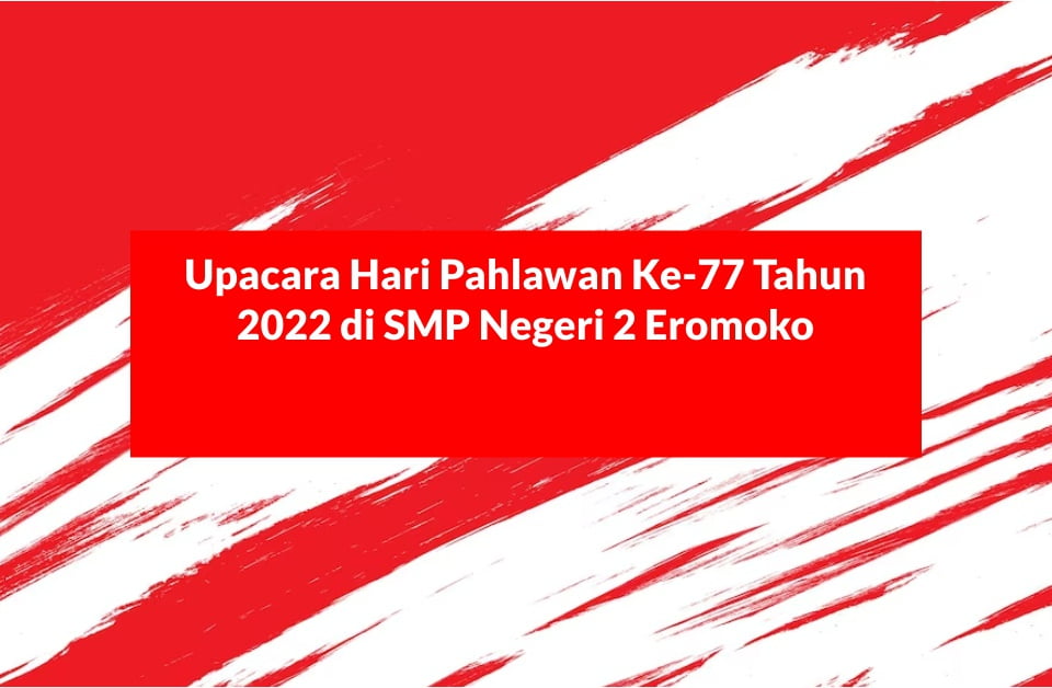 SMP Negeri 2 Eromoko – Pada hari Kamis (10/11/2022) telah dilaksanakan upacara peringatan Hari Pahlawan di halaman upacara SMP Negeri 2 Eromoko yang diikuti oleh seluruh warga sekolah. Upacara dipimpin langsung oleh Kepala Sekolah, bapak J Kabul Suripto, S.Pd. berlangsung dengan khidmat. Tanggal 10 November 2022 adalah hari bersejarah bagi bangsa Indonesia. Sebab peristiwa 10 November 1945 menjadi pertempuran pertama […]