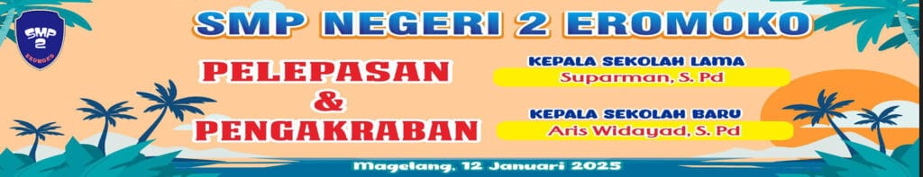 Minggu (12/01/2025) – Yang pertama adalah acara pelepasan ini merupakan bentuk apresiasi, penghargaan usaha, dan pencapaian yang luar biasa kepada Bapak Suparman, S.Pd. yang telah menyelesaikan tugasnya sebagai Kepala Sekolah dalam mengampu SMP Negeri 2 Eromoko per 1 Agustus 2024 hingga 31 Desember 2024.