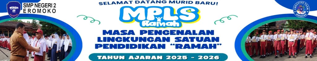 SMP Negeri 2 Eromoko, Senin (14/07/2025) – Masa Pengenalan Lingkungan Satuan Pendidikan (MPLS) Ramah adalah kegiatan pertama bagi murid baru yang dilakukan oleh satuan pendidikan untuk mengenalkan warga, kurikulum, dan lingkungan.